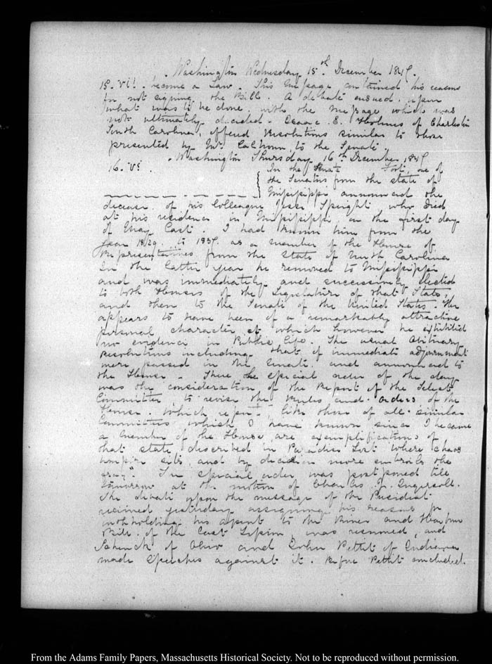 Washington Thursday 16th December 1847