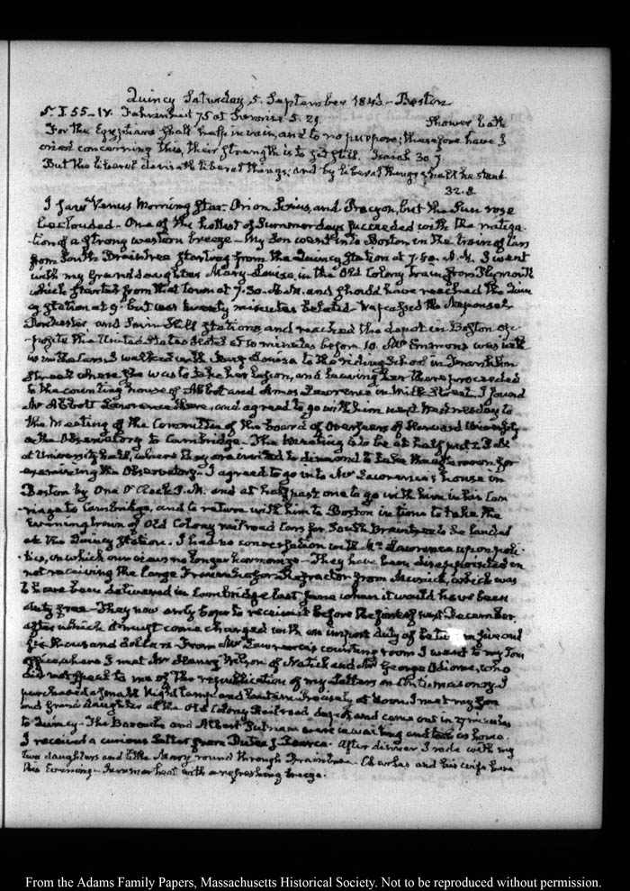 View full, authoritative transcriptions with page images of the diaries at John Quincy Adams Digital Diary part of the Primary Source Cooperative at the MHS.