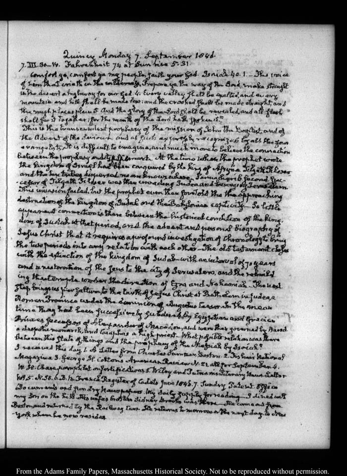 View full, authoritative transcriptions with page images of the diaries at John Quincy Adams Digital Diary part of the Primary Source Cooperative at the MHS.