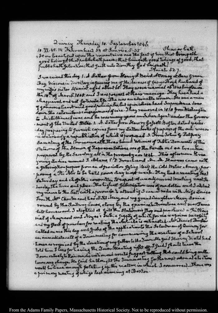 View full, authoritative transcriptions with page images of the diaries at John Quincy Adams Digital Diary part of the Primary Source Cooperative at the MHS.