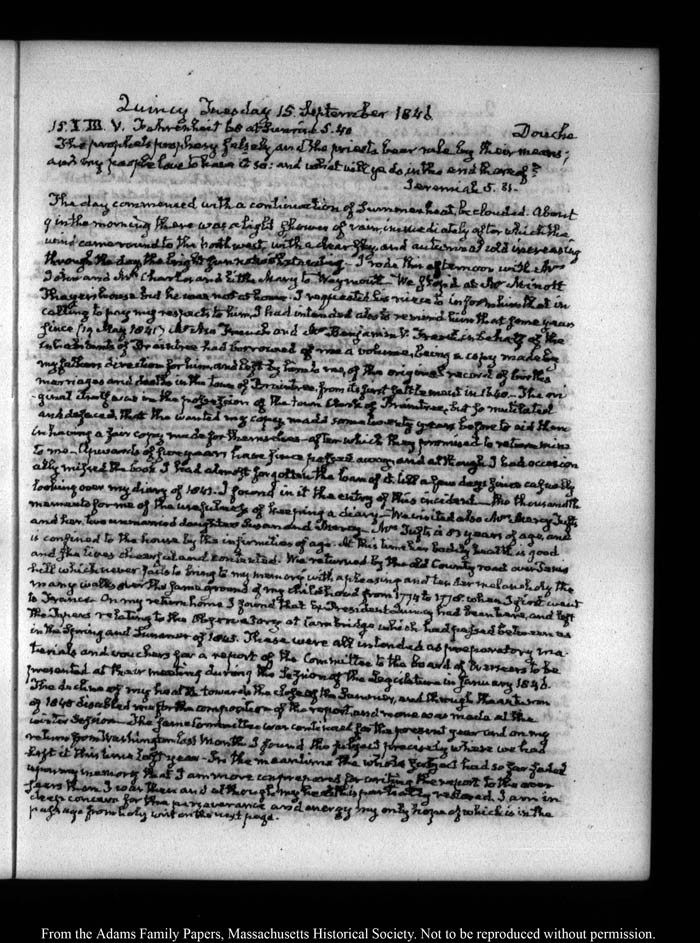 View full, authoritative transcriptions with page images of the diaries at John Quincy Adams Digital Diary part of the Primary Source Cooperative at the MHS.