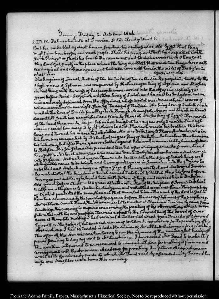 View full, authoritative transcriptions with page images of the diaries at John Quincy Adams Digital Diary part of the Primary Source Cooperative at the MHS.