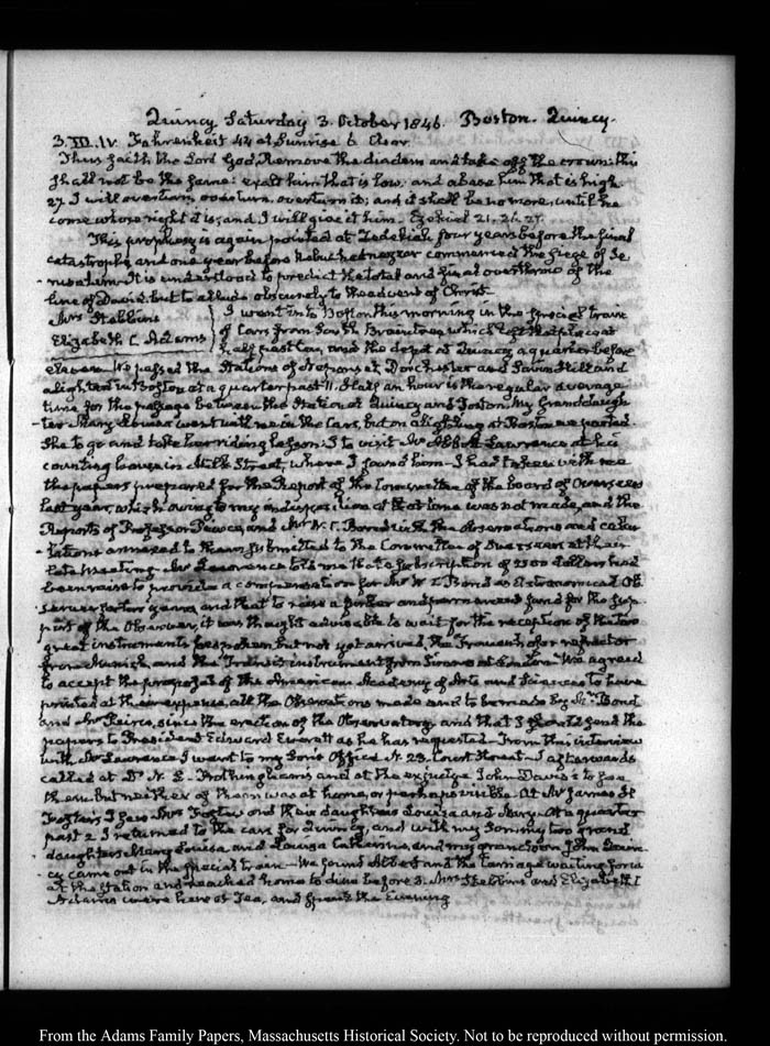 View full, authoritative transcriptions with page images of the diaries at John Quincy Adams Digital Diary part of the Primary Source Cooperative at the MHS.