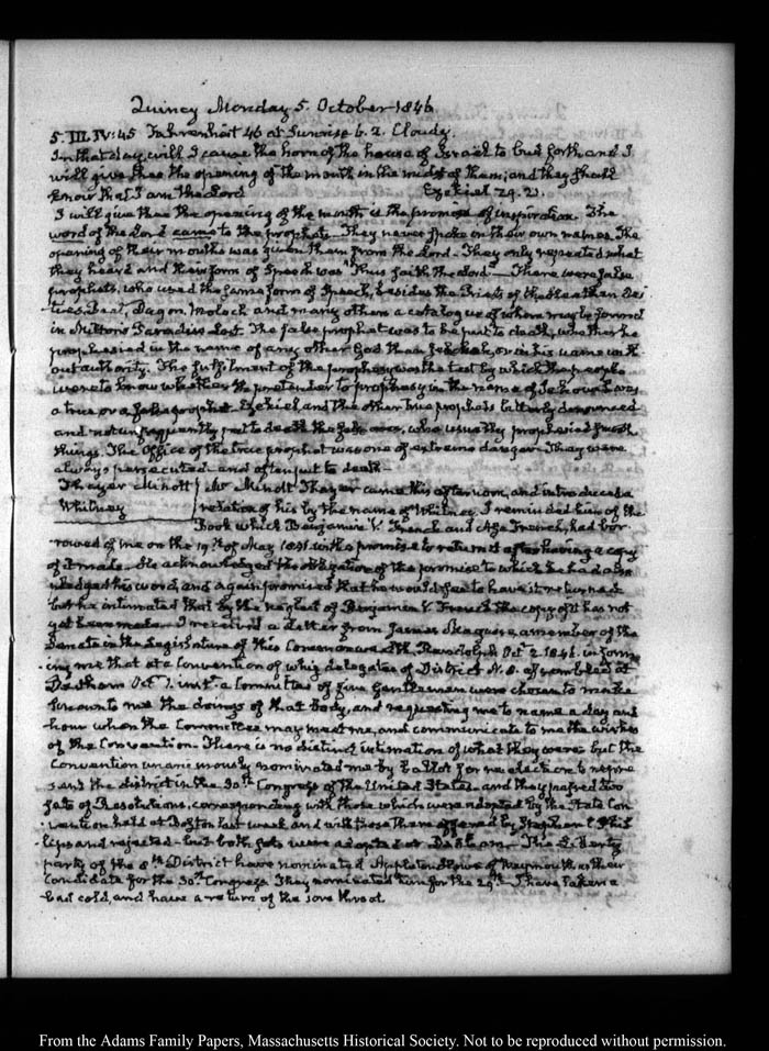 View full, authoritative transcriptions with page images of the diaries at John Quincy Adams Digital Diary part of the Primary Source Cooperative at the MHS.