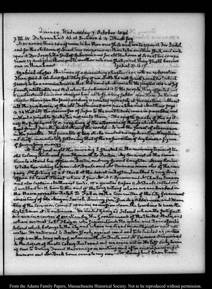 View full, authoritative transcriptions with page images of the diaries at John Quincy Adams Digital Diary part of the Primary Source Cooperative at the MHS.