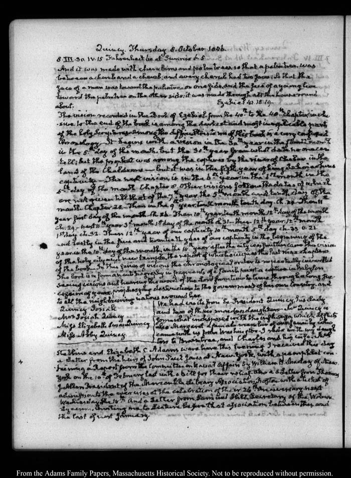 View full, authoritative transcriptions with page images of the diaries at John Quincy Adams Digital Diary part of the Primary Source Cooperative at the MHS.