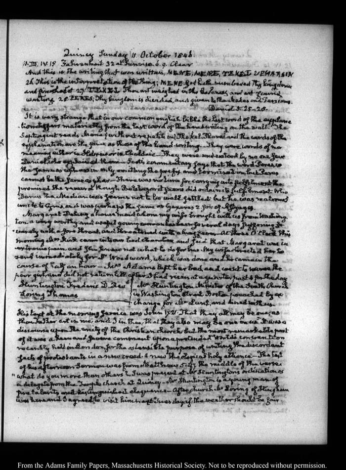 View full, authoritative transcriptions with page images of the diaries at John Quincy Adams Digital Diary part of the Primary Source Cooperative at the MHS.