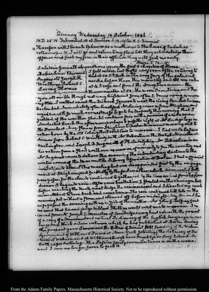 This is our legacy JQA diaries website and allows researchers to view the physical diaries page-by-page.