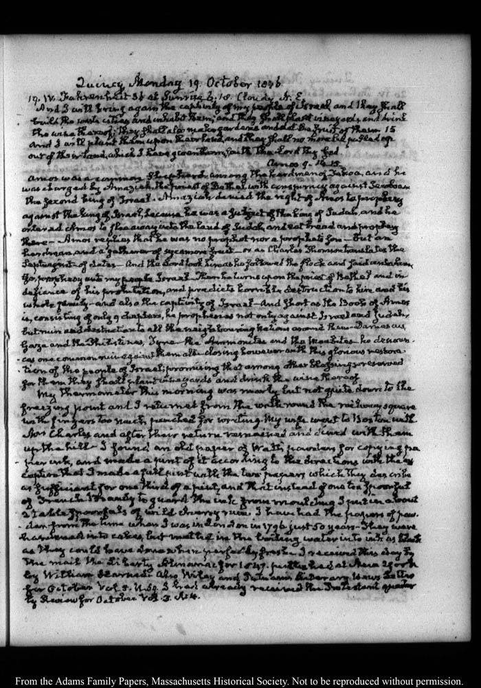 View full, authoritative transcriptions with page images of the diaries at John Quincy Adams Digital Diary part of the Primary Source Cooperative at the MHS.