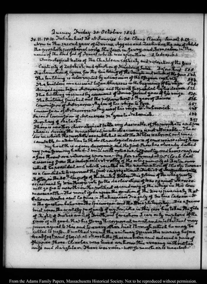 View full, authoritative transcriptions with page images of the diaries at John Quincy Adams Digital Diary part of the Primary Source Cooperative at the MHS.