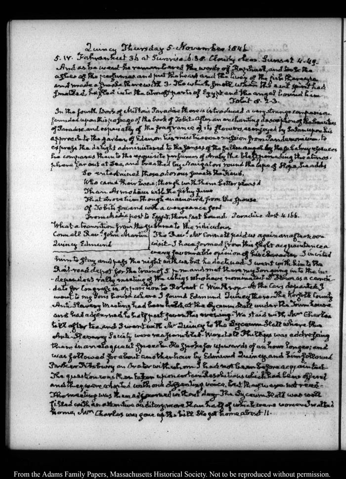 View full, authoritative transcriptions with page images of the diaries at John Quincy Adams Digital Diary part of the Primary Source Cooperative at the MHS.