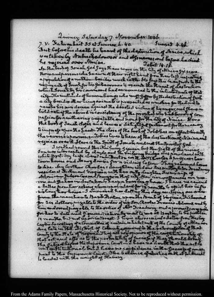 View full, authoritative transcriptions with page images of the diaries at John Quincy Adams Digital Diary part of the Primary Source Cooperative at the MHS.