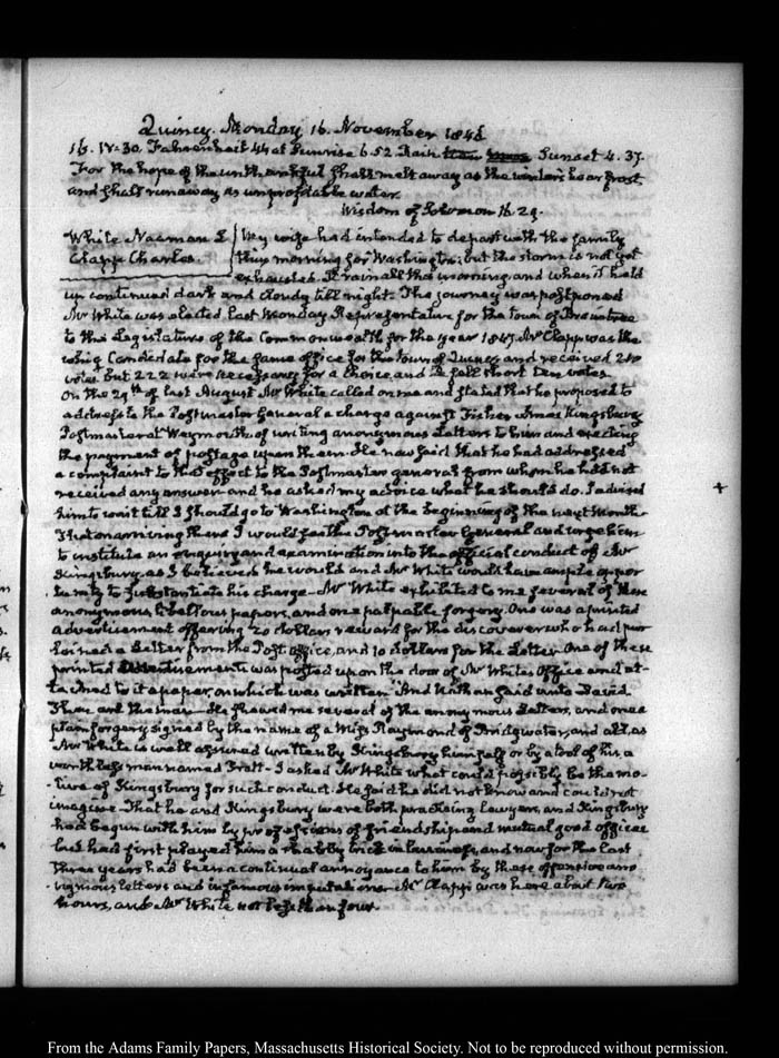 This is our legacy JQA diaries website and allows researchers to view the physical diaries page-by-page.