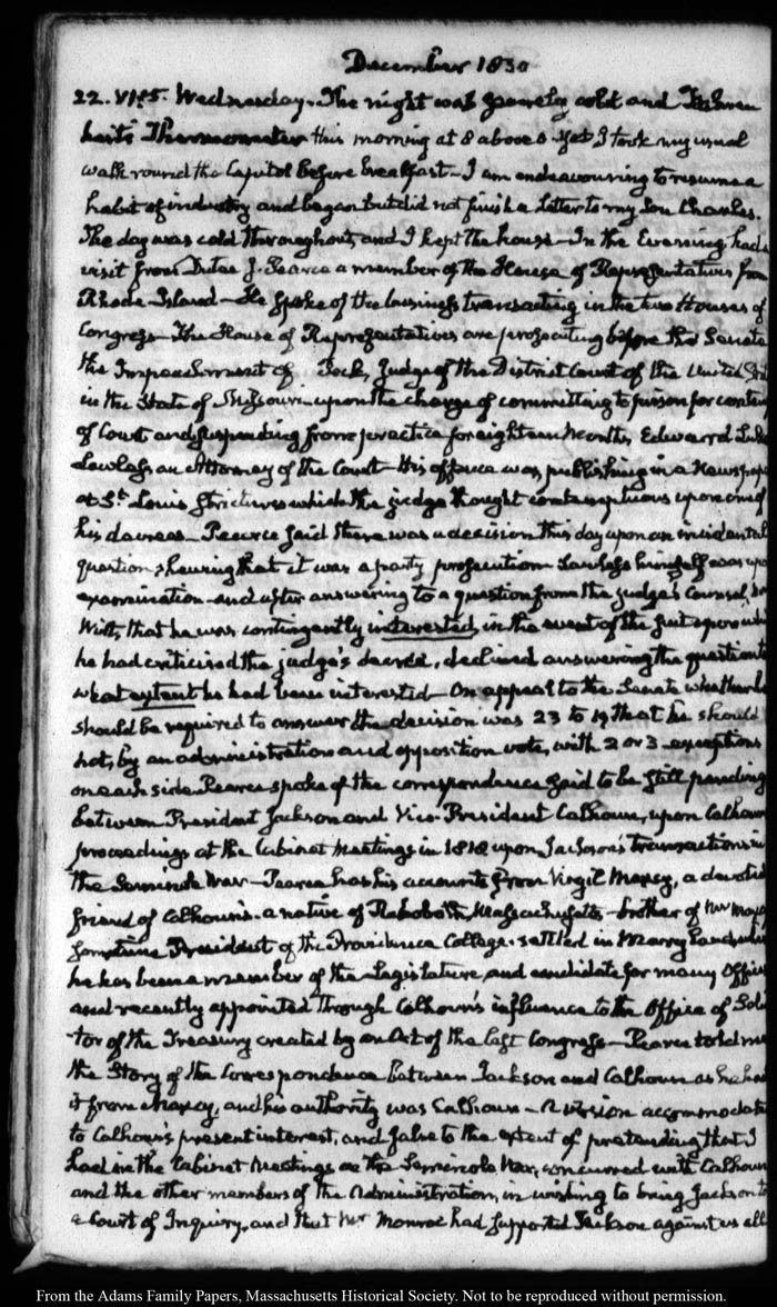 View full, authoritative transcriptions with page images of the diaries at John Quincy Adams Digital Diary part of the Primary Source Cooperative at the MHS.