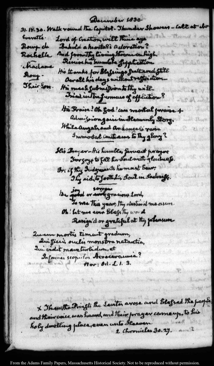 View full, authoritative transcriptions with page images of the diaries at John Quincy Adams Digital Diary part of the Primary Source Cooperative at the MHS.