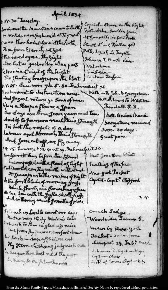 View full, authoritative transcriptions with page images of the diaries at John Quincy Adams Digital Diary part of the Primary Source Cooperative at the MHS.