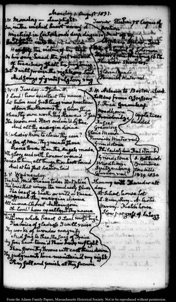 View full, authoritative transcriptions with page images of the diaries at John Quincy Adams Digital Diary part of the Primary Source Cooperative at the MHS.
