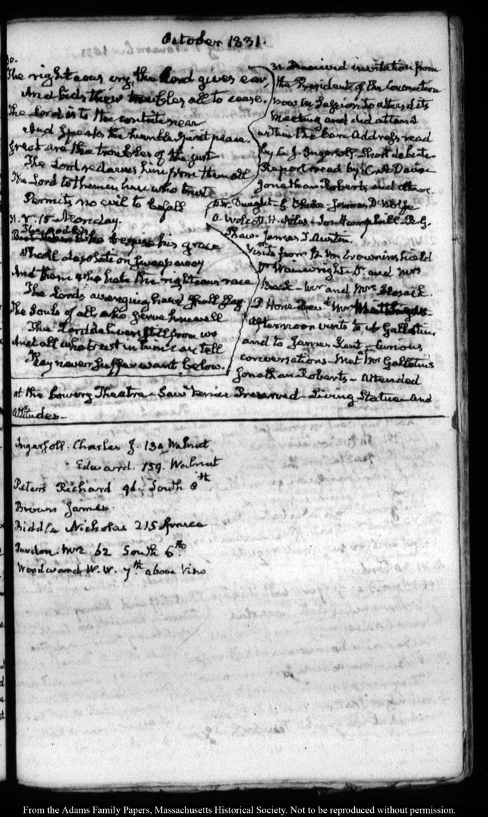 View full, authoritative transcriptions with page images of the diaries at John Quincy Adams Digital Diary part of the Primary Source Cooperative at the MHS.