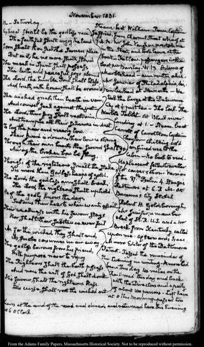 View full, authoritative transcriptions with page images of the diaries at John Quincy Adams Digital Diary part of the Primary Source Cooperative at the MHS.