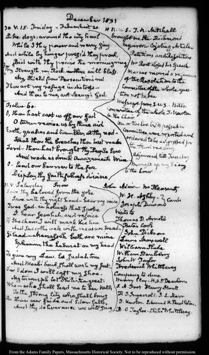 View full, authoritative transcriptions with page images of the diaries at John Quincy Adams Digital Diary part of the Primary Source Cooperative at the MHS.