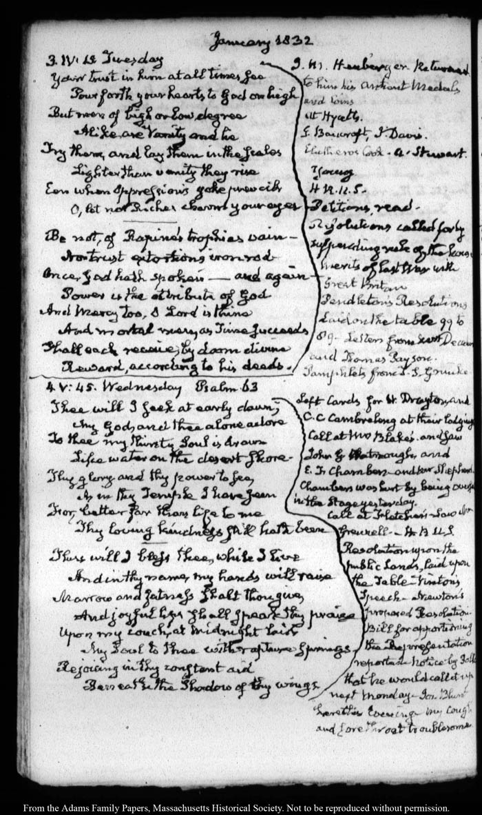 View full, authoritative transcriptions with page images of the diaries at John Quincy Adams Digital Diary part of the Primary Source Cooperative at the MHS.