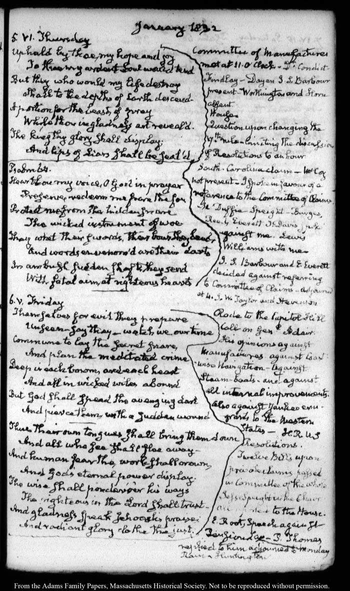 View full, authoritative transcriptions with page images of the diaries at John Quincy Adams Digital Diary part of the Primary Source Cooperative at the MHS.