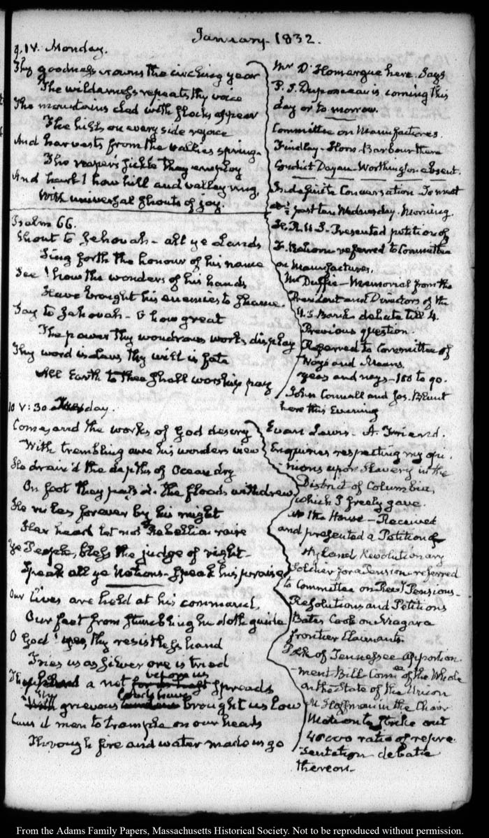 View full, authoritative transcriptions with page images of the diaries at John Quincy Adams Digital Diary part of the Primary Source Cooperative at the MHS.