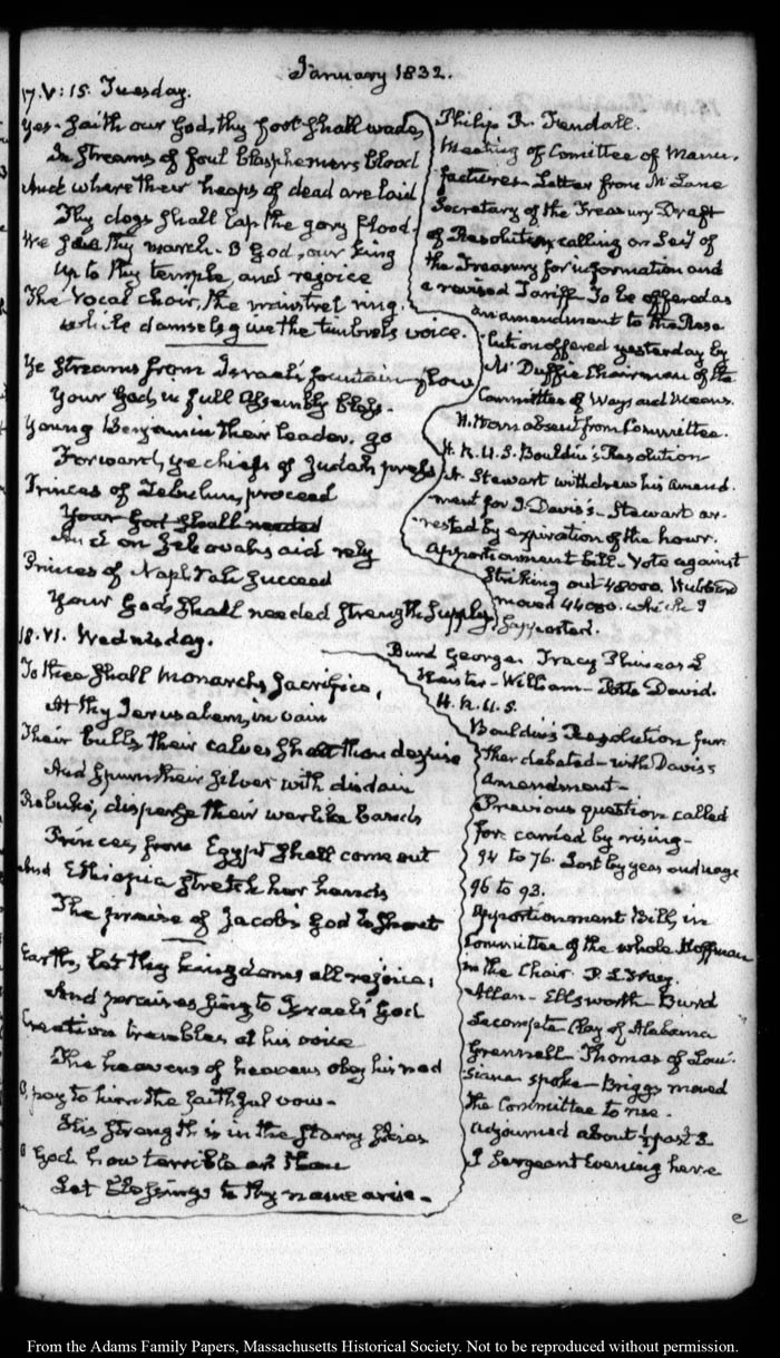 View full, authoritative transcriptions with page images of the diaries at John Quincy Adams Digital Diary part of the Primary Source Cooperative at the MHS.