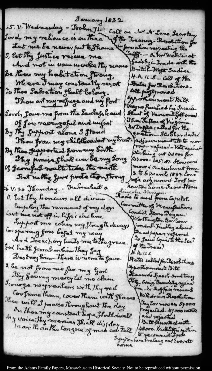 View full, authoritative transcriptions with page images of the diaries at John Quincy Adams Digital Diary part of the Primary Source Cooperative at the MHS.
