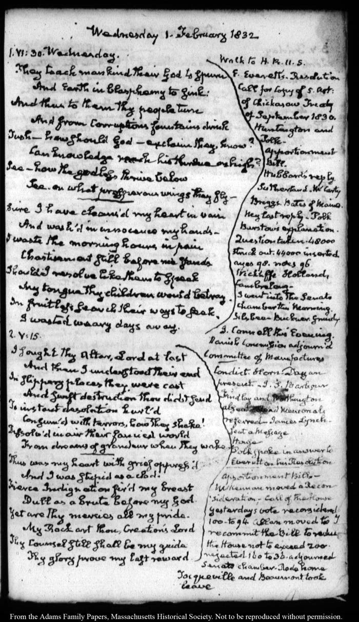 View full, authoritative transcriptions with page images of the diaries at John Quincy Adams Digital Diary part of the Primary Source Cooperative at the MHS.