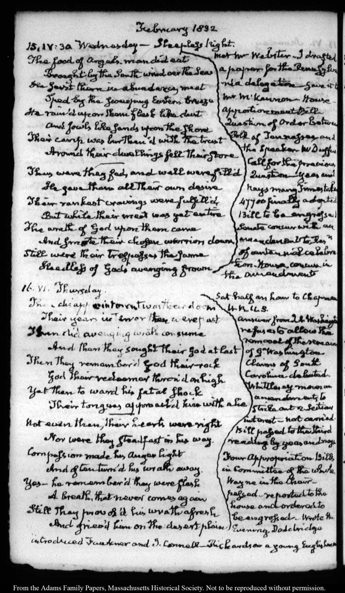 View full, authoritative transcriptions with page images of the diaries at John Quincy Adams Digital Diary part of the Primary Source Cooperative at the MHS.