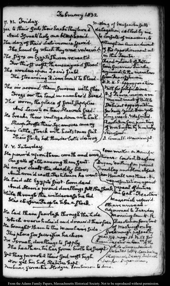 View full, authoritative transcriptions with page images of the diaries at John Quincy Adams Digital Diary part of the Primary Source Cooperative at the MHS.