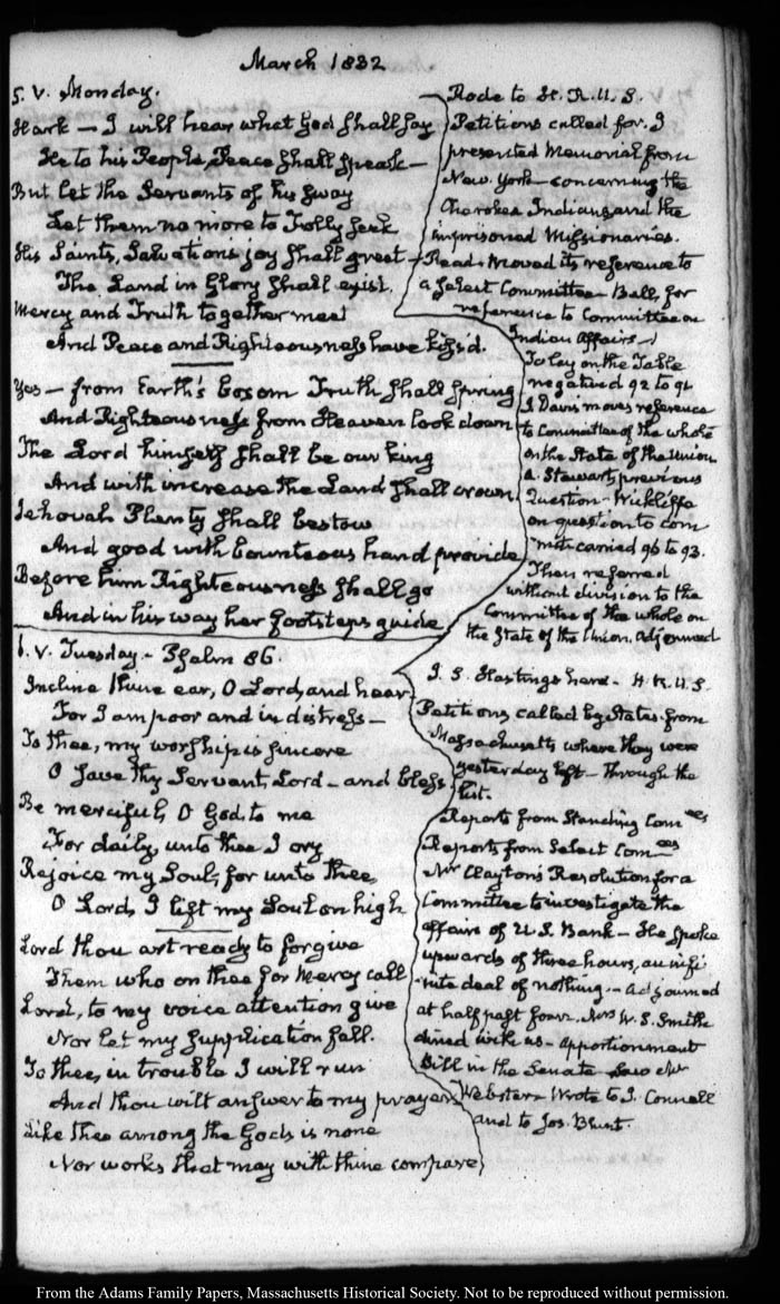View full, authoritative transcriptions with page images of the diaries at John Quincy Adams Digital Diary part of the Primary Source Cooperative at the MHS.