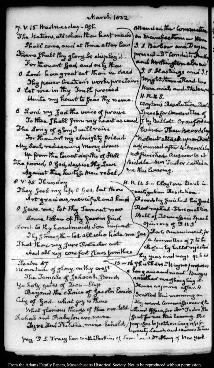 View full, authoritative transcriptions with page images of the diaries at John Quincy Adams Digital Diary part of the Primary Source Cooperative at the MHS.
