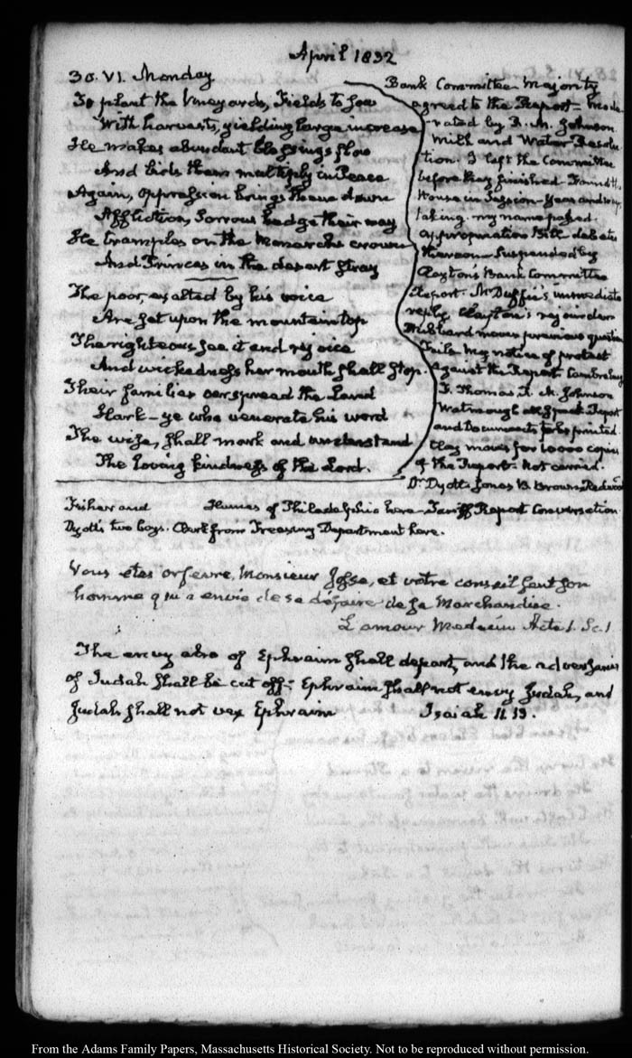 View full, authoritative transcriptions with page images of the diaries at John Quincy Adams Digital Diary part of the Primary Source Cooperative at the MHS.