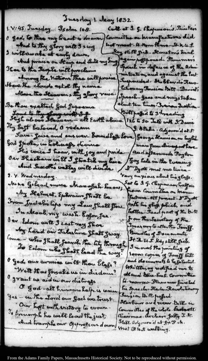 View full, authoritative transcriptions with page images of the diaries at John Quincy Adams Digital Diary part of the Primary Source Cooperative at the MHS.
