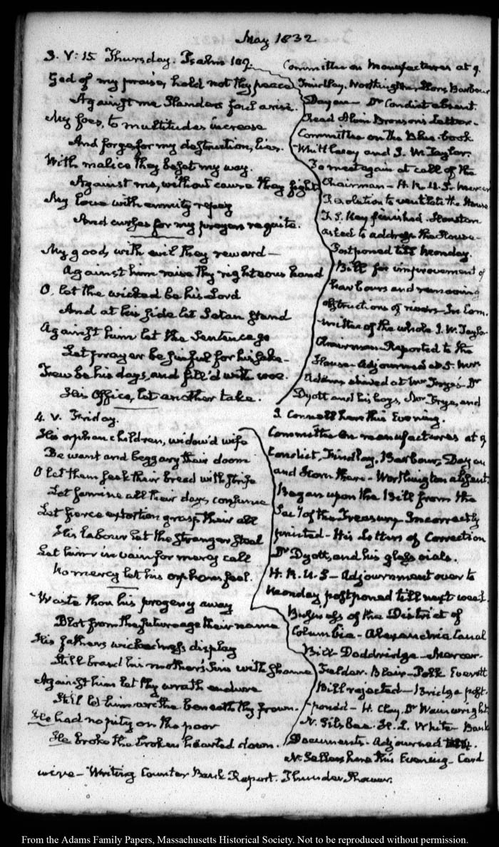 View full, authoritative transcriptions with page images of the diaries at John Quincy Adams Digital Diary part of the Primary Source Cooperative at the MHS.