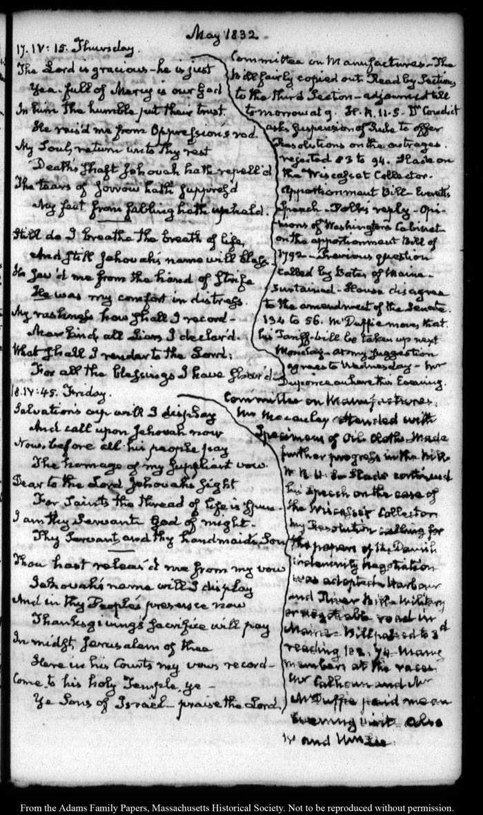 View full, authoritative transcriptions with page images of the diaries at John Quincy Adams Digital Diary part of the Primary Source Cooperative at the MHS.