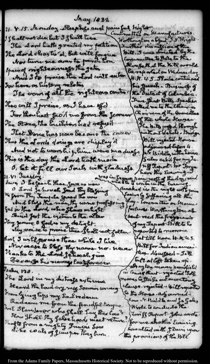 View full, authoritative transcriptions with page images of the diaries at John Quincy Adams Digital Diary part of the Primary Source Cooperative at the MHS.