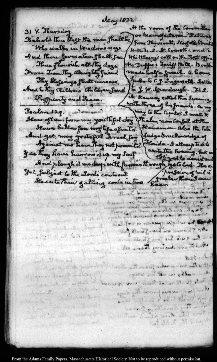View full, authoritative transcriptions with page images of the diaries at John Quincy Adams Digital Diary part of the Primary Source Cooperative at the MHS.