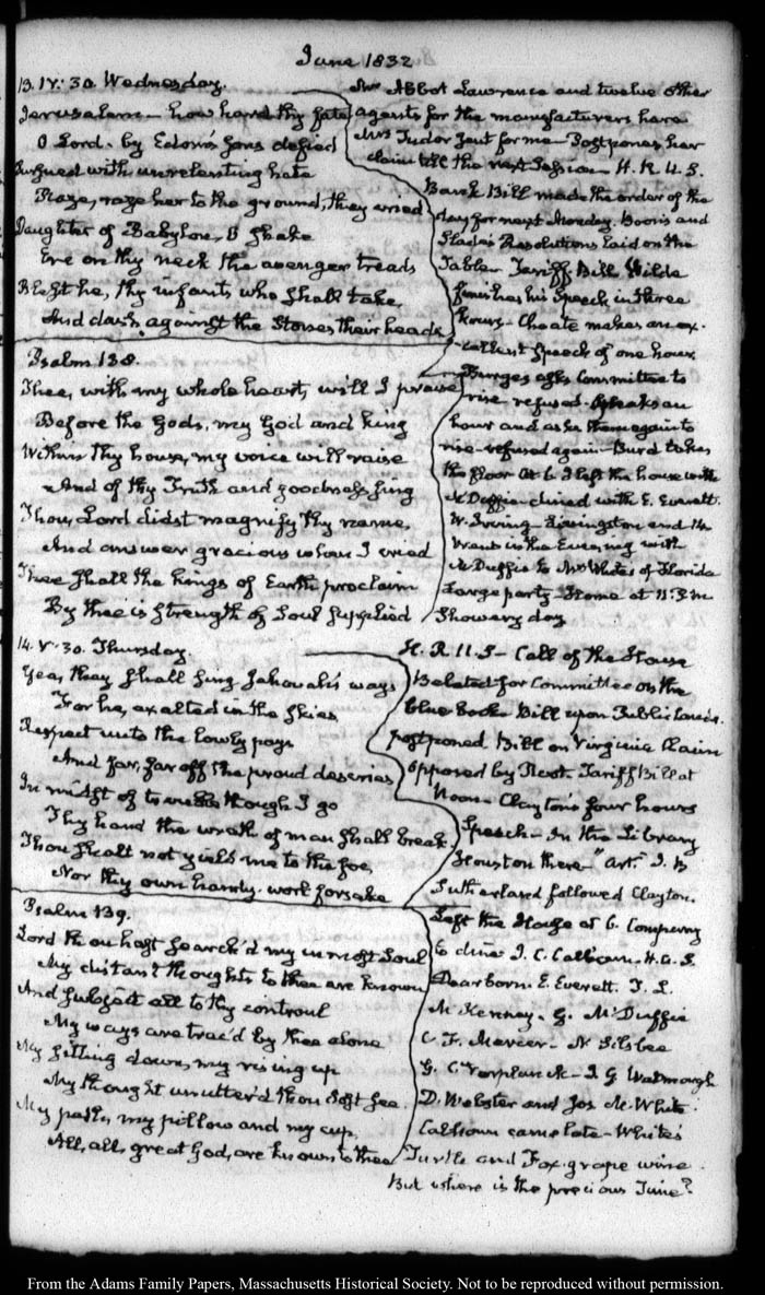 View full, authoritative transcriptions with page images of the diaries at John Quincy Adams Digital Diary part of the Primary Source Cooperative at the MHS.
