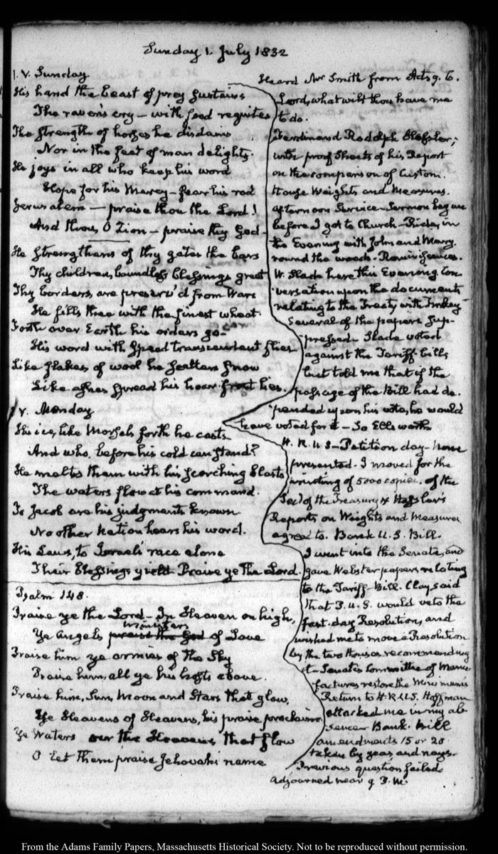 View full, authoritative transcriptions with page images of the diaries at John Quincy Adams Digital Diary part of the Primary Source Cooperative at the MHS.