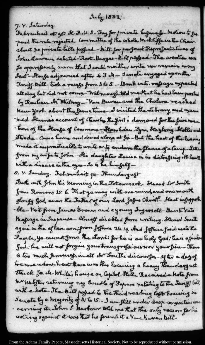 View full, authoritative transcriptions with page images of the diaries at John Quincy Adams Digital Diary part of the Primary Source Cooperative at the MHS.