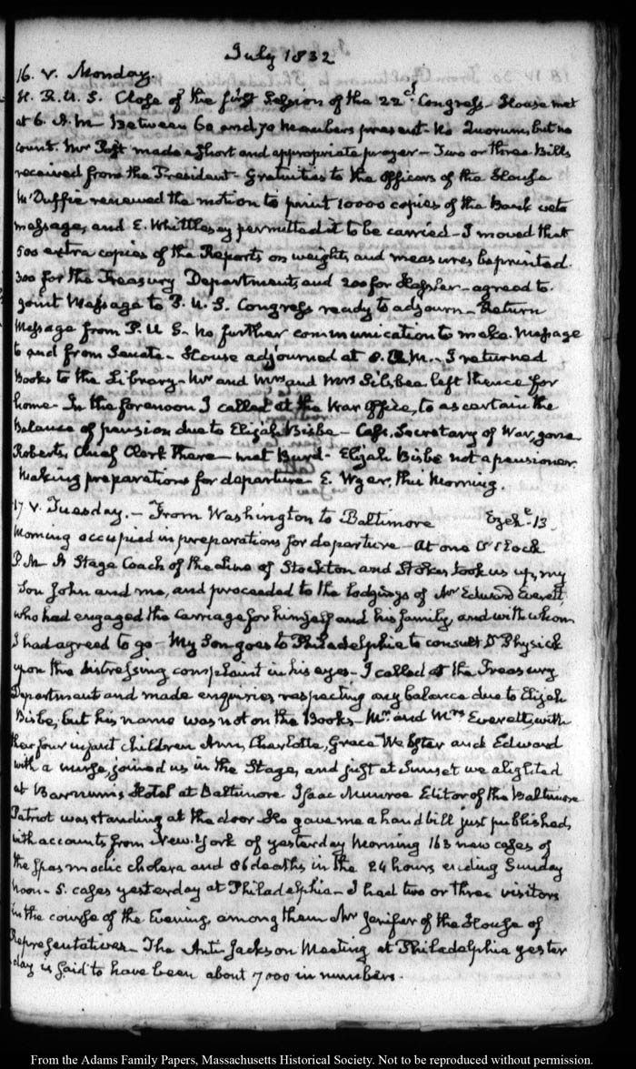 View full, authoritative transcriptions with page images of the diaries at John Quincy Adams Digital Diary part of the Primary Source Cooperative at the MHS.