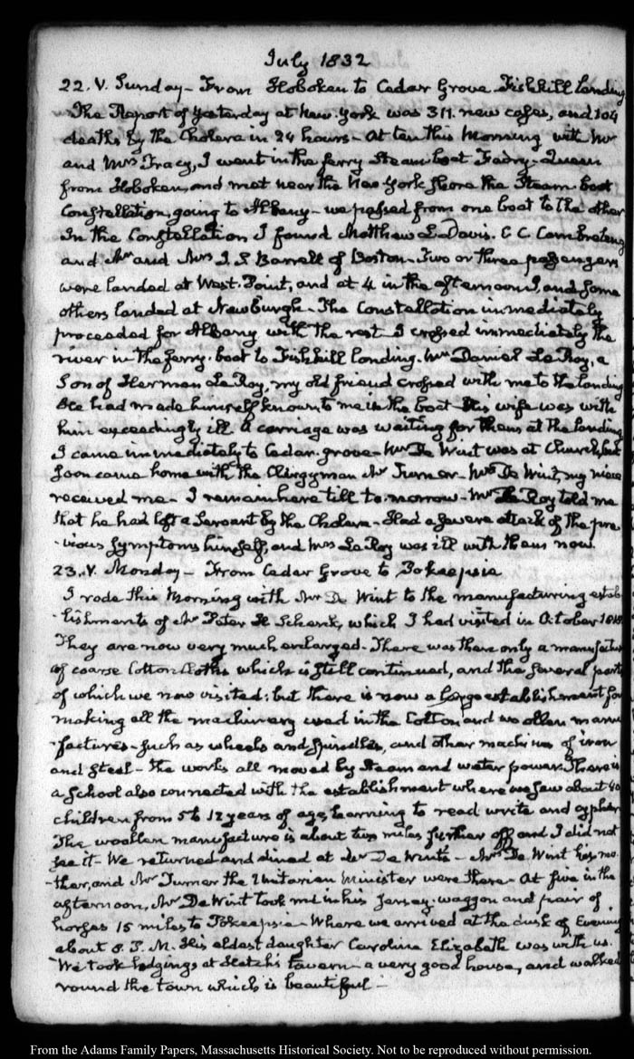 View full, authoritative transcriptions with page images of the diaries at John Quincy Adams Digital Diary part of the Primary Source Cooperative at the MHS.