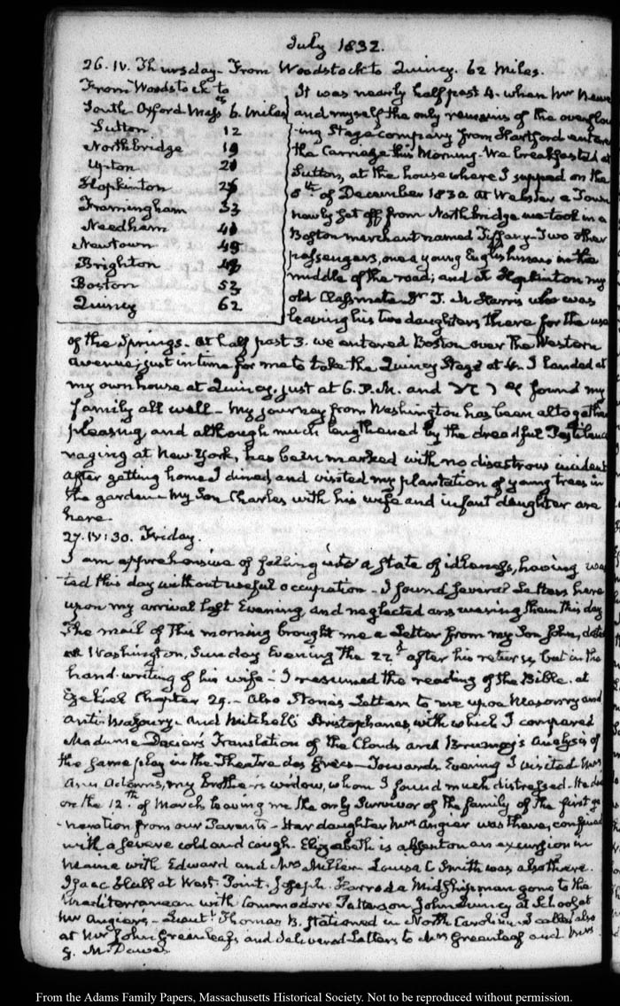 View full, authoritative transcriptions with page images of the diaries at John Quincy Adams Digital Diary part of the Primary Source Cooperative at the MHS.