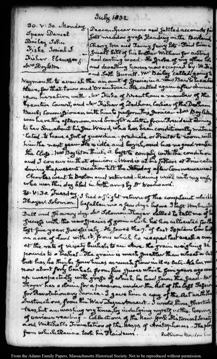 View full, authoritative transcriptions with page images of the diaries at John Quincy Adams Digital Diary part of the Primary Source Cooperative at the MHS.