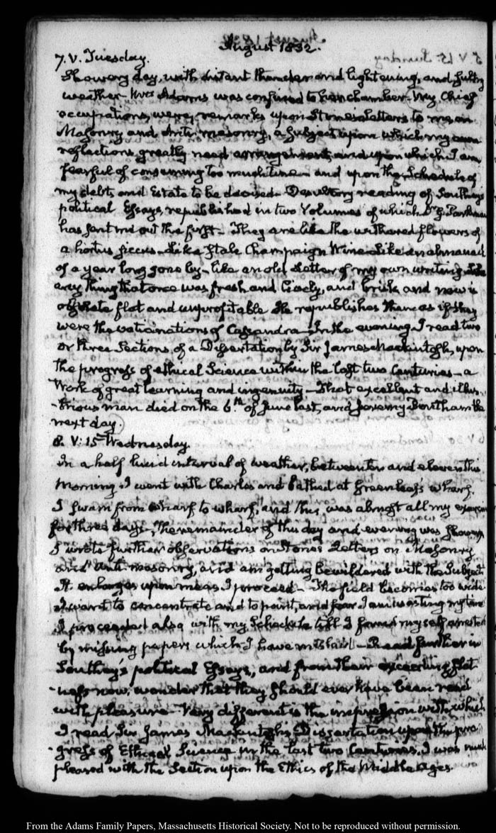 View full, authoritative transcriptions with page images of the diaries at John Quincy Adams Digital Diary part of the Primary Source Cooperative at the MHS.