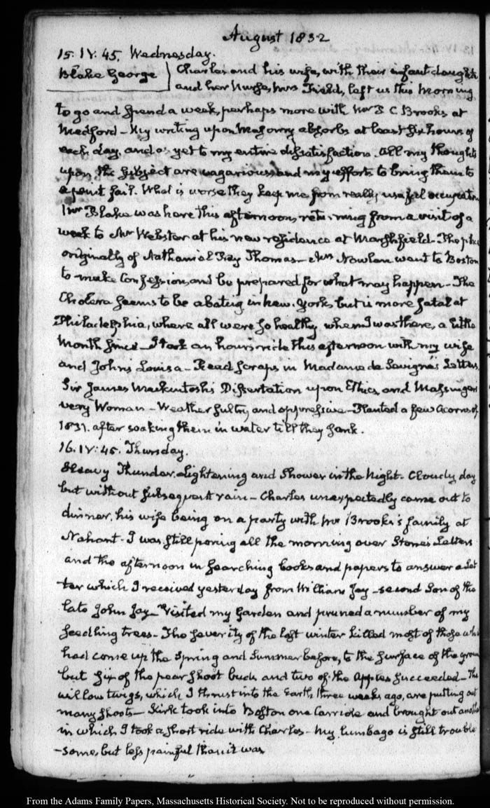 View full, authoritative transcriptions with page images of the diaries at John Quincy Adams Digital Diary part of the Primary Source Cooperative at the MHS.