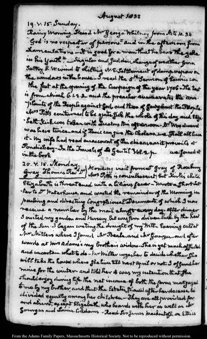 View full, authoritative transcriptions with page images of the diaries at John Quincy Adams Digital Diary part of the Primary Source Cooperative at the MHS.
